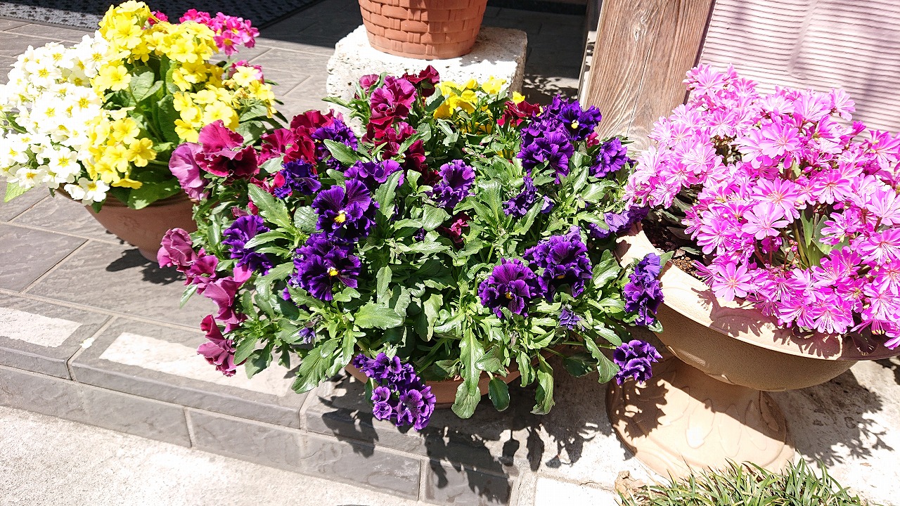 暖かい日が続き、春らしい庭になってきました! 店舗前花壇の芝桜は満開です